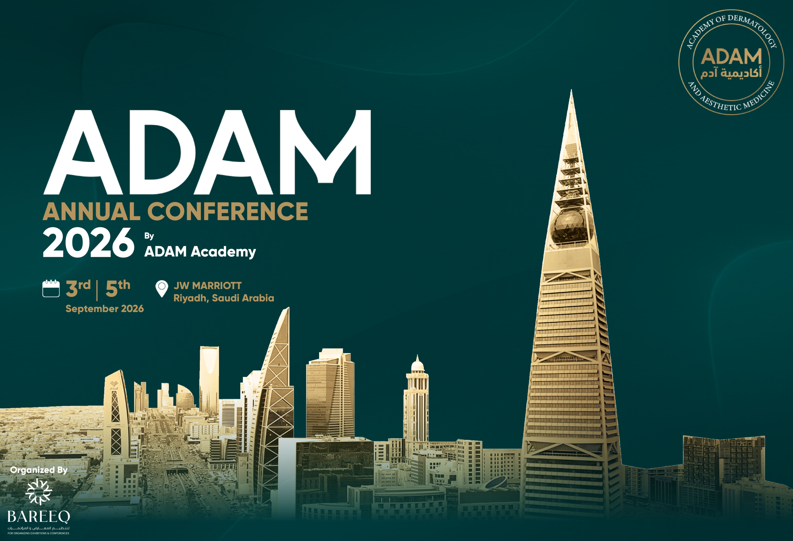 We are honored to welcome you to the ADAM Annual Conference 2026, a premier scientific event dedicated to dermatology, aesthetic medicine, laser therapy, and related specialties. Held at the JW Marriott Hotel, Riyadh, Saudi Arabia, the conference brings together leading experts for knowledge exchange, hands-on workshops, and the latest scientific advancements. Join us as a valued partner to gain exceptional visibility and connect directly with key professionals and decision-makers shaping the future of the industry.